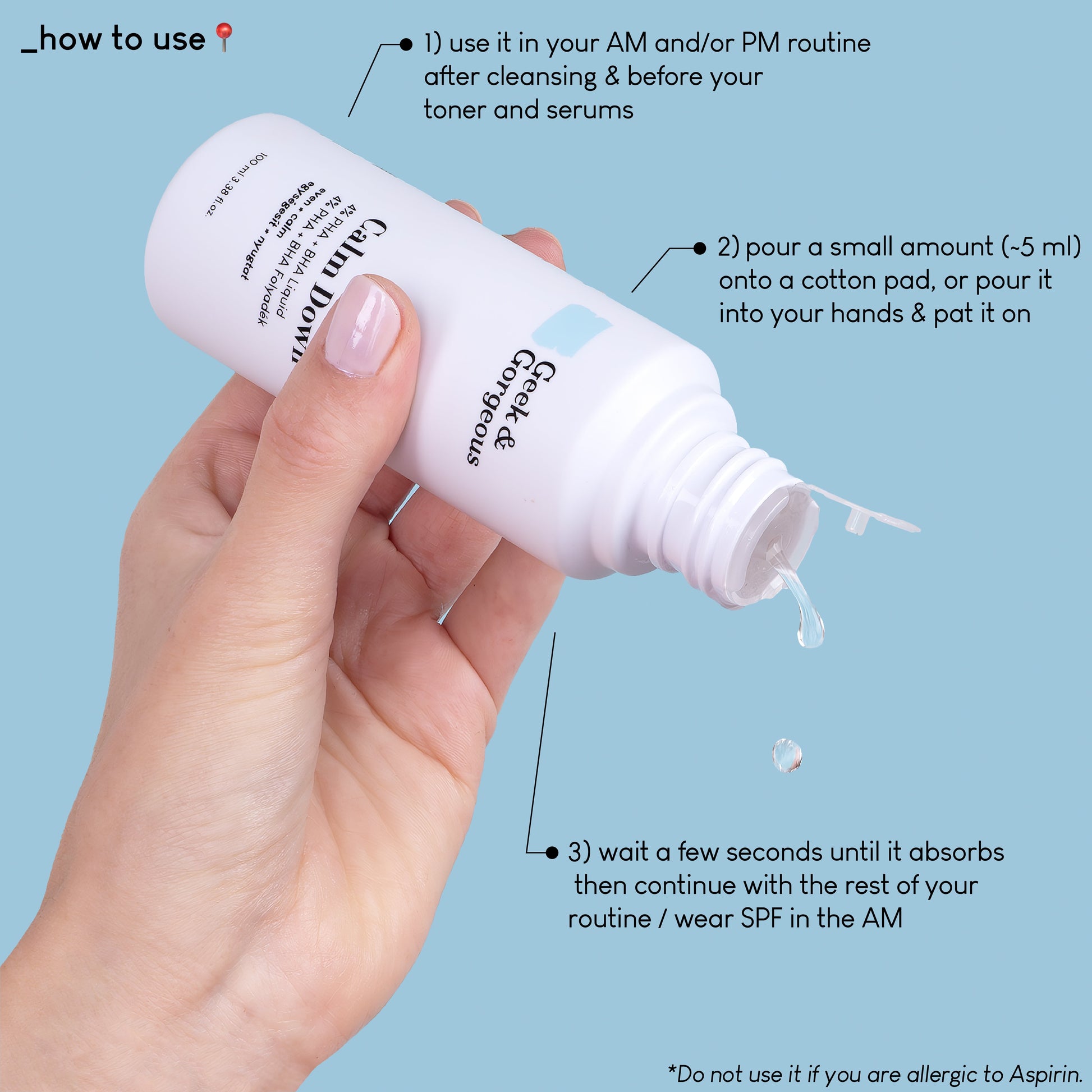 GOOD TO KNOW: This exfoliant contains only acids that do not make the skin more sensitive to the sun, so it is an ideal gentle exfoliant for the summer. (However, UV light being the number one external skin-damaging factor, we still do recommend using a good SPF every morning.)